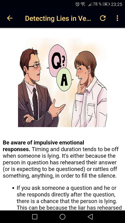 This app will guide you step by step on detecting a liar. Very precise techniques without a lie detector to know how to read the face: body language