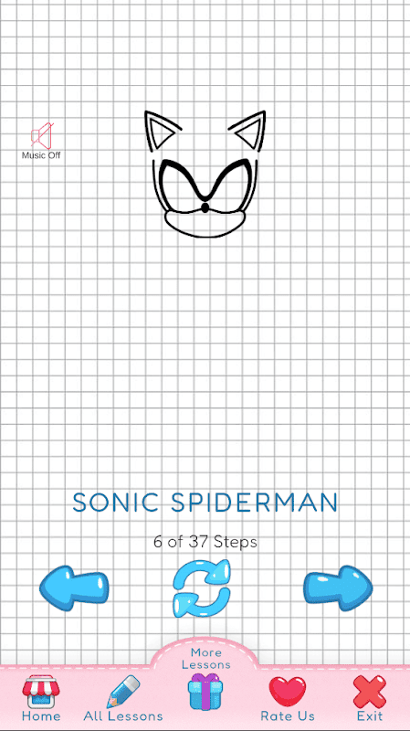 The How to Draw Sonik character step by step application has very simple and intuitive controls, you will cope with it without any problems.