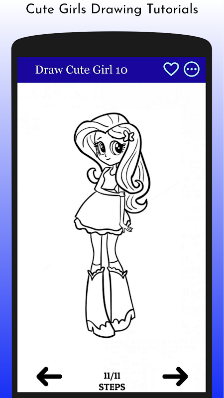 The cute girls drawing in this app is provided in step by step guide. Every step is easy to follow and simple. It starts from the first step by drawing lines to the final step. All the drawing instruction presented here is suitable for all ages. You can use this how to sketch app to self-learning drawing or you can use this simple drawing app to teach your little ones how to draw to develop their creativity by drawing girls.