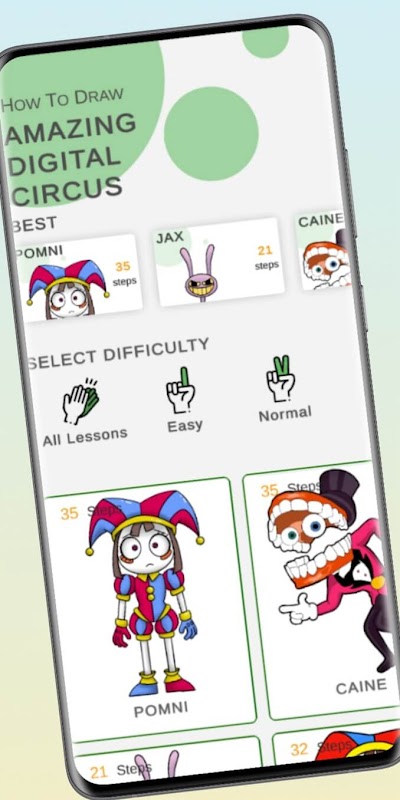 Amazing Digital Circus is a cartoon popular worldwide with its unique characters. If you do not know how to draw the main characters, then this is a training application for you! Here you will find many step -by -step drawing lessons. The Amazing Digital Circus Character training applies will help you draw your favorite characters in its various images. Here you will find many step -by -step drawing lessons.