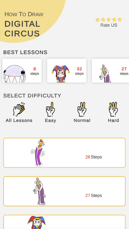 And to make it easier for you to learn how to draw your favorite "Digital Circus" characters, we have filtered all the lessons by level of difficulty. If you are a complete beginner, choose lessons from the "Easy" section and follow the instructions.
