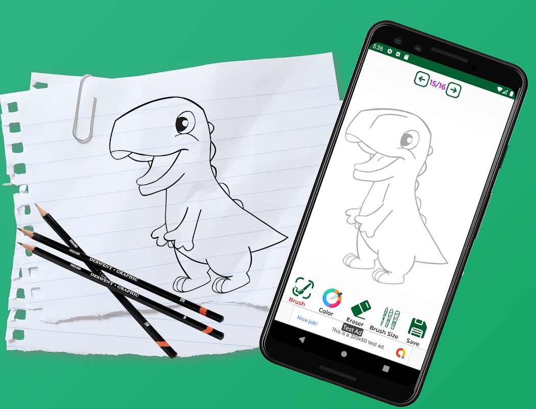 Install a drawing practice app step by step and learn how to draw dinosaurs. Use one of the most popular drawing tutorial apps and become a better artist. Draw and color dinosaurs on your phone, save them on your device or share your drawings with your friends and family to show them your artwork.