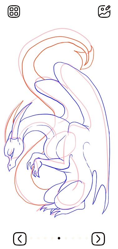 Huge lizards with gorgeous wings and brilliant scales! Don't they fascinate and attract the eye? And how many stories about dragon riders are there? Flying on them... Sometimes you just want to immerse yourself in a fantasy world by drawing a magical creature... And in this, our application can help you. Do you want to learn how to draw cool dragons and surprise your friends? Then our drawing lessons are for you - open the app and go ahead!