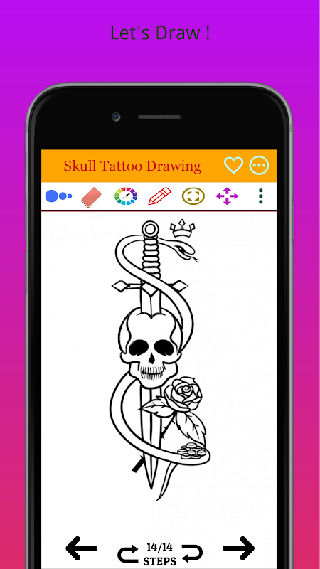 If you want to draw a tattoo, then you have found the best place. Our app will help you learn how to draw skull tattoo in easy ways. You don’t have to worry if you don’t know how to draw tattoo because our drawing tutorials are provided in step by step tattoo drawing guide. All you have to do is pick one of your favorite skull tattoo designs, and then follow the step by step guide.