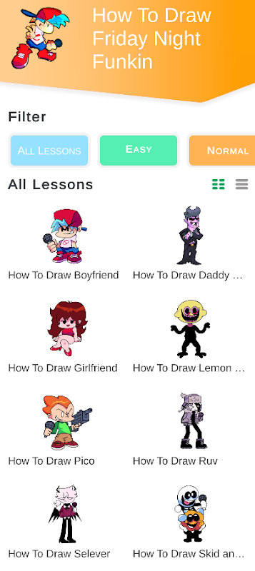 Easy navigation in How to Draw FNF app will allow everyone to quickly master drawing skills. We can safely recommend our application to everyone, then wants to quickly learn how to draw.