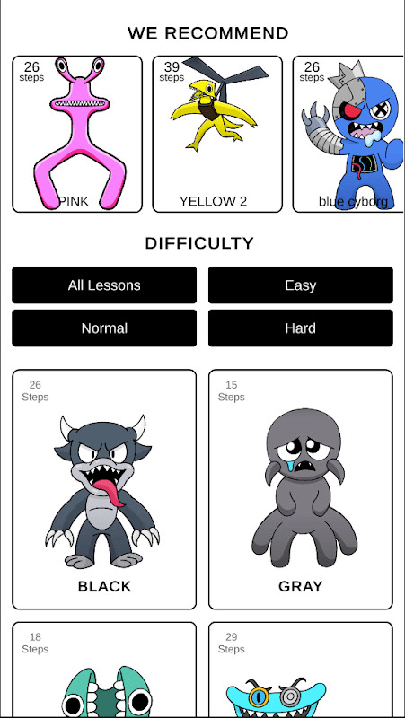 What to do in the application? To begin with, choose a character you would like to draw. Before that, do not forget to take a sheet of paper, pencil and washing. After choosing a hero, start a lesson! Repeat all the steps that are given in the lesson, and you will easily draw the selected character. Believe me, you do not need experience and skills in drawing. Everything will work out! Step by step, follow the lessons of the application How to DRAW Rainbow Frien STEP by Step and the result will not be long in coming!