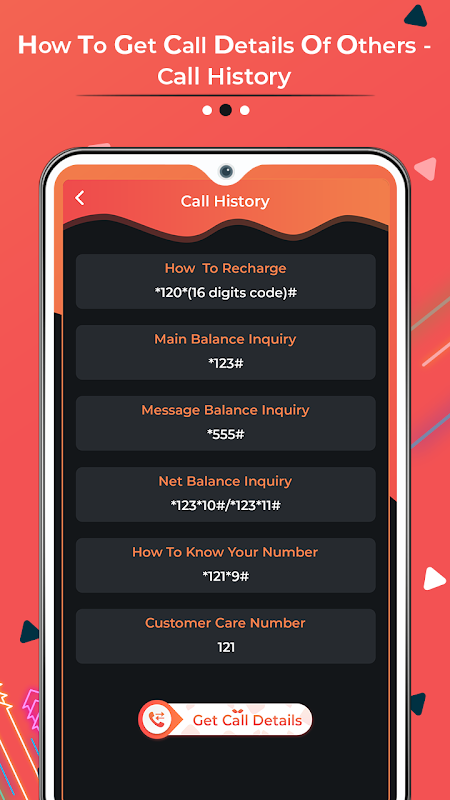 How to Get Call Details of Others - Call History app also provides much more information like how to recharge, Main balance inquiry, Message balance inquiry, How to know your number, Customer care number or also Net balance inquiry. Application with now you can see the call history of anyone numbers, just by our special application.