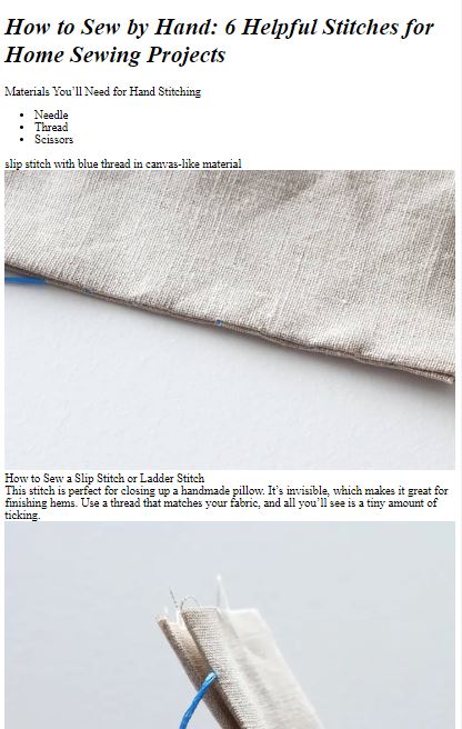 Old Versions of How to Hand Sew Basic Stitches