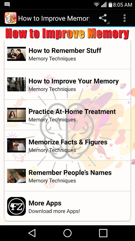 Download this app and learn how to improve your memory and stop forgetting things. You can always improve your memory and there are many different methods, tricks and tips for memory improvement and most of them are easy to follow.