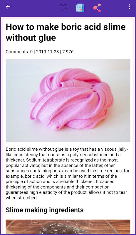 "How To Make Slime" is your perfect helper for making all sorts of slimes! Get simple and detailed instructions on how to make fluffy slime without glue and sodium tetraborate, fluffy slime in Russian, fluffy slime at home, slime, slime without glue and sodium tetraborate, and many other types of slimes! Our application offers the best and proven recipes for creating slime. Make your own unique slime with How to Make Slime now!