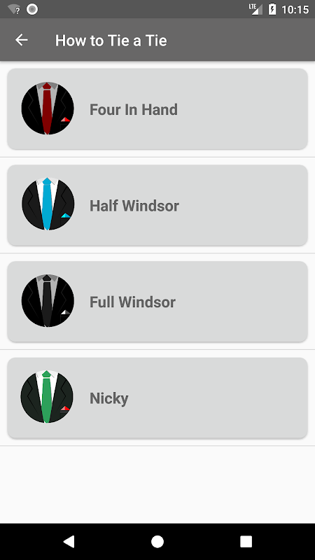 Here you will find many kinds of knots of tie for your learning: