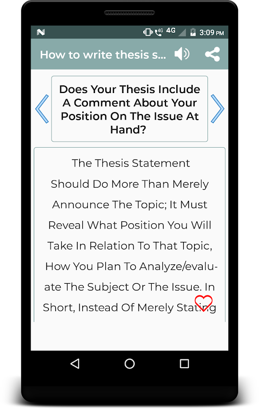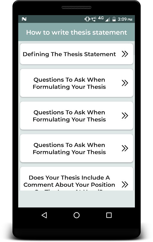 Thesis topics are arranged in different faculties, programs and courses. You choose and modify the topic suggestion to suit what you are planning to research on. Writing Thesis app will help you to generate an essay statement. Once you input your essay topic, opinion for and against the topic, the essay outline will be generated to you. You can also edit or delete any generated thesis statement outline.