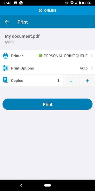 Quickly print to a printer via HP Mobile Connector.