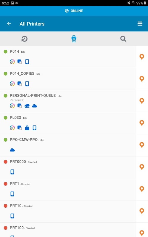 - search for authorized printers by printer name, long name or printer location