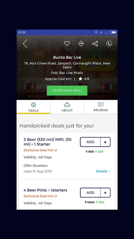 Food & Beverages - Pre-book ur order; Do Pub Crawling; Enjoy the deals n loyalty discounts at best of the watering holes n food joints in town..
