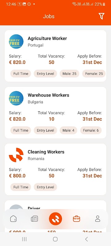 The app’s CV builder makes it easy to create a professional resume by inputting your personal, educational, and professional information. Once your CV is ready, you can explore a wide range of job listings tailored to various industries and professions. Applying for jobs is seamless, as you can use your generated CV within the app to submit applications instantly.