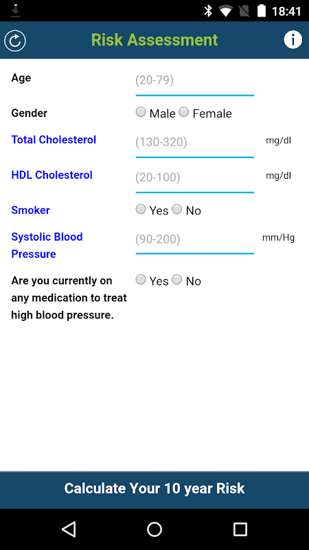 The App is designed for people aged 20 or older who do not have heart disease or diabetes and it uses the information from the Framingham Heart Study for calculating and providing the Risk Score.”