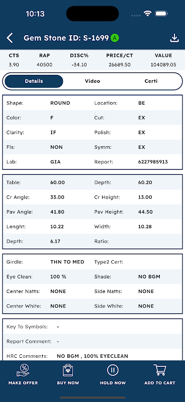 H RIDDHESH & CO. application, you can quickly and easily find out diamonds. This is a free application for H RIDDHESH & CO. business user to buy diamonds. Just enter the stone's parameters (carat, clarity, color,) into this simple and user-friendly application and get a full stock list of diamonds.