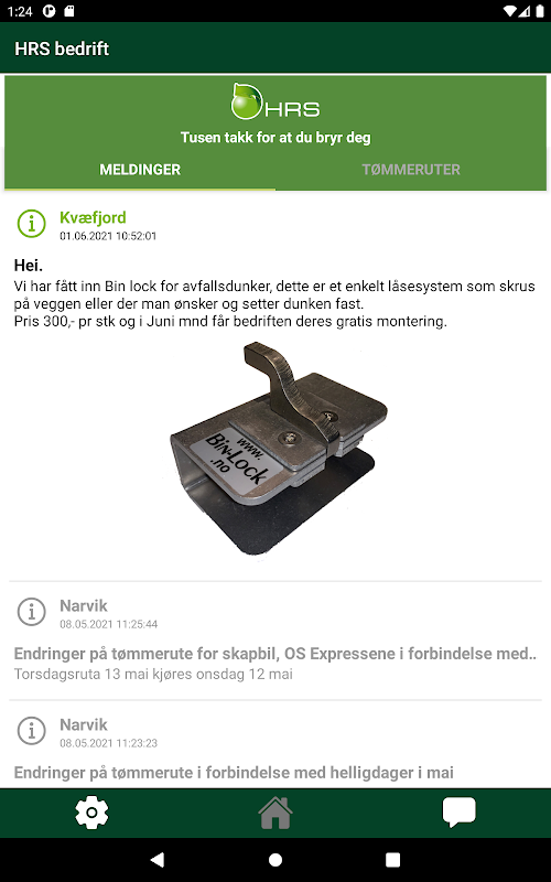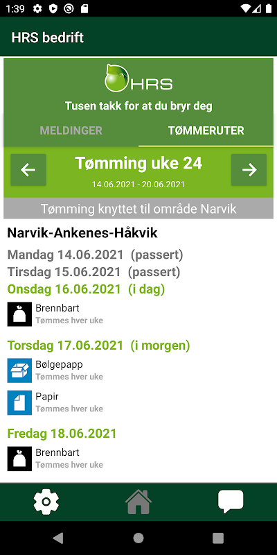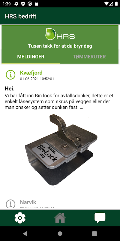 Du kan også bruke appen for å kommunisere og utveksle meldinger med HRS Miljø AS.