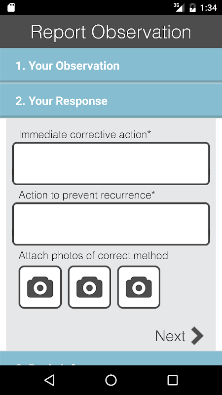 The HSE Observation tool enables users to report an issue using a mobile or tablet, on the spot to the management with the help of captured images and detailing of the situation. The safety measures and concerns differs from site to site; so this is specially taken into consideration in this application. Moreover a detailing of the best practices is also available. The reported observations are delivered to the authorised HSE managers who maintain a web based application in order to take necessary actions to avoid unsafe acts/incidents in future.