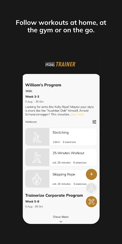 With the HSE Trainer App, you will have access to workout programs designed specifically to help you reach your fitness, sports performance and health goals! You can follow & track your workouts, your nutrition, your lifestyle habits, measurements and results–all with the help of your coach.