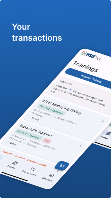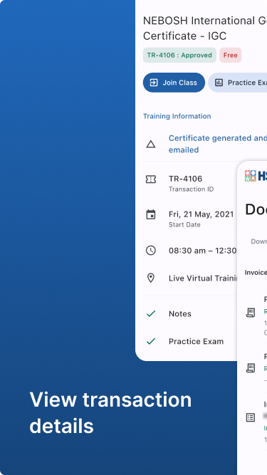- View details, download invoice, receipts and supplementary notes of your current training or exam
