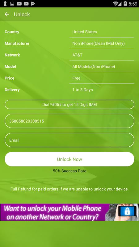unlocking for all HTC models on AT&T network. Unlocks all models, even the latest ones if SIM is listed as clean. For other networks, the HTC service will unlock your mobile device at very low price. Receive code via in-app notification. You will get notified in your app as soon as you code is available. Easy to use and very functional app and use.