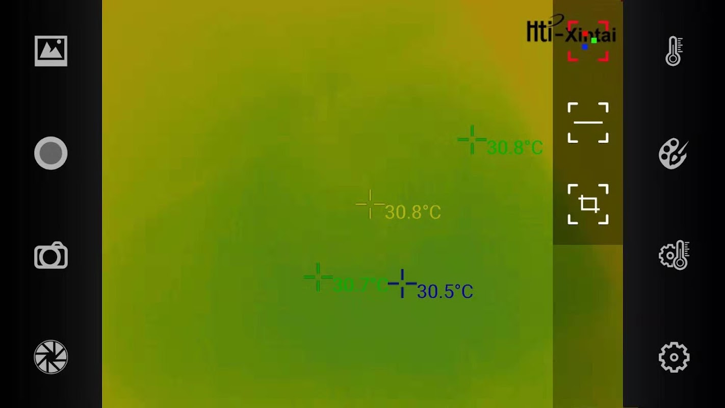 This software is a complete set of APP for HT-301 thermal imager. Users can view the picture captured by thermal imager in real time through the software, and can take photos and videos of the current picture. The software has built-in multi-point temperature measurement, line segment temperature measurement and frame-selected area temperature measurement. Users can see the highest temperature, lowest temperature and the position of the center of the screen and the corresponding temperature value in real time through these three methods. Users can also choose the color palette to adjust the color of the screen to get a better viewing experience.