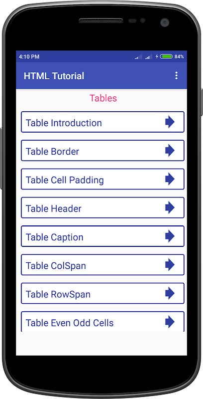 HTML Tutorial app collections of Categories are below and provide all this Topic