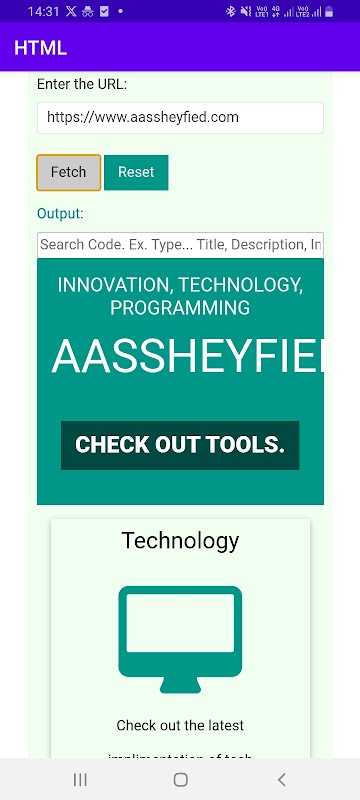 Not only that but on this app, you will also be able to view the HTML source code of any URL. For example, if you want to view the source code of an example.com domain then you just have to type the domain example.com inside of the domain area and tap on the fetch domain button.