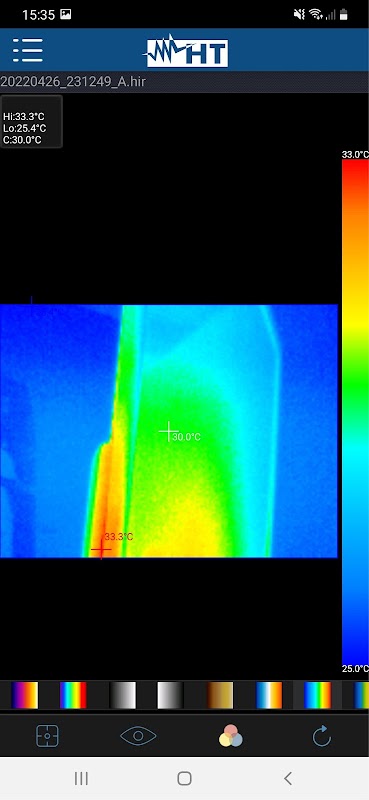 HTProCamera is a professional software compliance with Android Smartphones for real-time viewing of thermographic images obtained from the HT ITALIA THT500x, THT600x and THT80 infrared camera models, performing advanced analyzes and creating reports for sharing with other users.