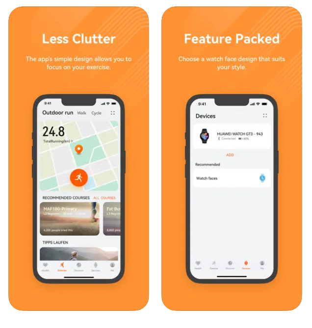Huawei Health comes with a wide variety of features including your overall step count, calorie burns, and intensity on a large widget. There are records for your exercises or add your daily workout modes. There are following features: