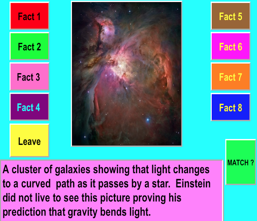 Once you correctly match eight pictures with eight facts, you will get a password to use to solve the unique puzzle pictures any time you want.