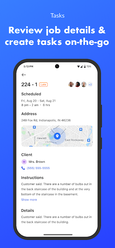 Start and stop timers with a tap, or automatically when arriving at a job site using geofencing.