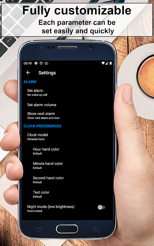 Moreover, it is possible to set an alarm. The alarm works also with the clock in background or with the phone locked.
