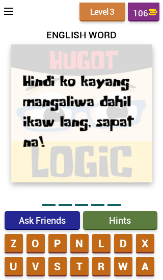 Hugot Lines And Logic Trivia Quiz is a game that will surely love by Hugot person. If some of your friends left by their GF, BF, Wife or Husband. Or if you have unresolved problem in your life. Then this Hugot Logic game is for you. You will see famous or some rare hugot lines that you need to complete the hugot or if you know the person who said the Hugot Lines. It could be in the movies, social media or by your friend. As a bonus this game also test your brain by tricky logic trivia.