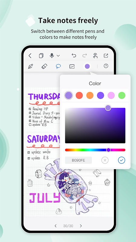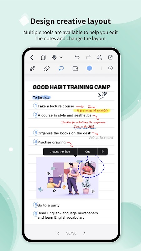 - Design the layout of your notes with multiple editing tools such as an eraser and lasso tool or insert pictures to create unique and beautiful diaries.