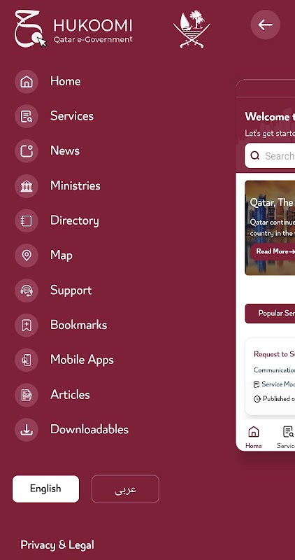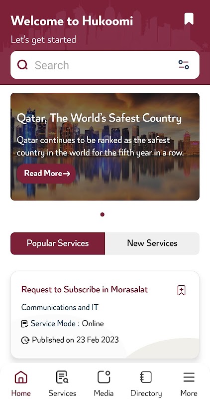 - Access latest news of government entities in Qatar, information and e-services through a unified directory search.