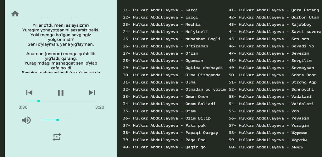 Old Versions of Hulkar Abdullayeva Qo'shiqlar