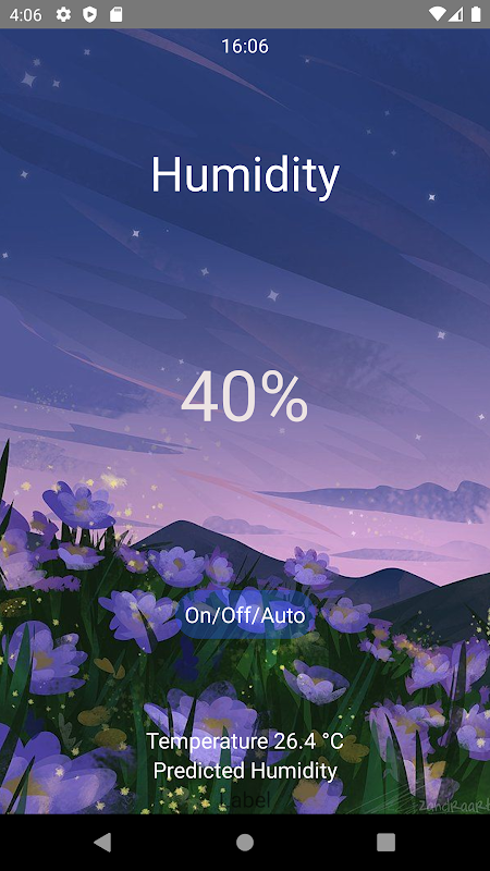 Once HC and user's humidifier are connected to power, users can remotely control it by using our application built with Thunkble. The main page of the application shows real-time humidity level in the center and temperature at the bottom. Users can switch modes between manual control and automatic control.