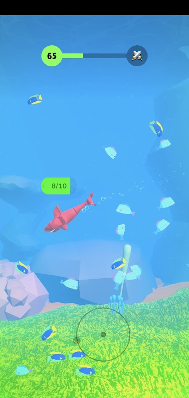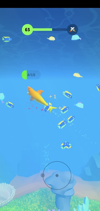 Drag around to move the shark around, eat fish to grow up and finally fight against the ultimate boss.