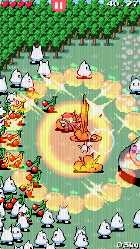Delica and her talking cat Saten are hungry! Lucky for them they know how to turn the monsters that infest the nearby forest into fruit. Your goal is to survive long enough to collect enough fruit to feed yourself and the locals.