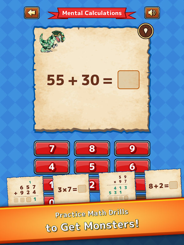 A free educational app for elementary school students to learn math calculations with fun. It covers all the basic maths that your kids learn in elementary 1st to 3rd grade like addition, subtraction, multiplication and division. Easy-to-use user interface and context-dependent hints help your kids to learn without assistance. Answering the math questions faster and more correctly gives higher scores and kids can get various types of monsters, which enables them to enjoy the learning process.