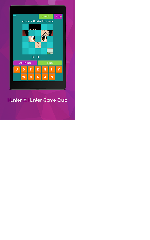 Can you guess the name of the hunter x hunter game character only from the picture, even the image is partially covered? In order to complete the level, you need to correctly click on the letter in the name of the image, and the level will finish, and a new level will open. So what are you waiting for? Download "Hunter X Hunter Game Quiz" now! Enjoy playing this fun game, and don't forget to rate us on google play store and positive comments are very much appreciated!