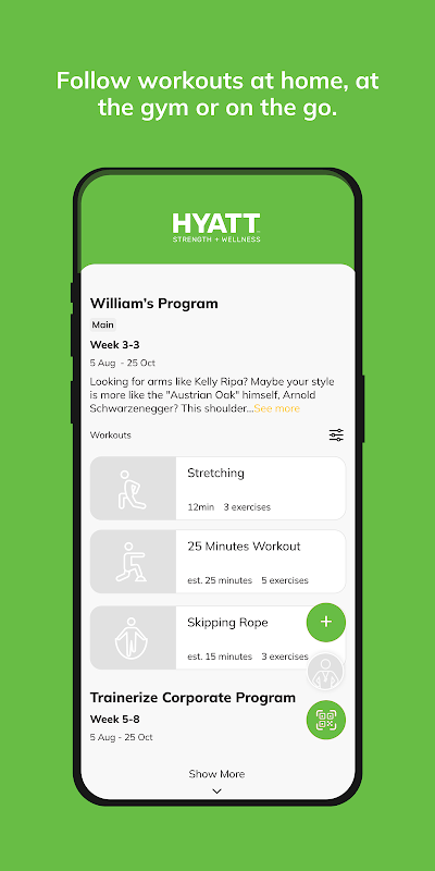 The Hyatt Training app is a customized app for Hyatt Training members. You can start tracking your workouts and meals, measuring results, and achieving your fitness goals, all with the help of your personal trainer.