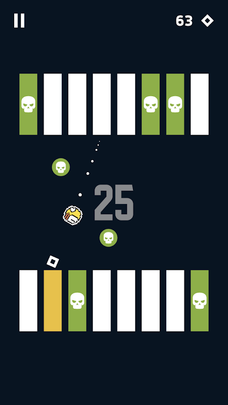 Every time you land on a blank wall, a wall with a skull will appear. These walls will destroy you if you land on them, so aim carefully!