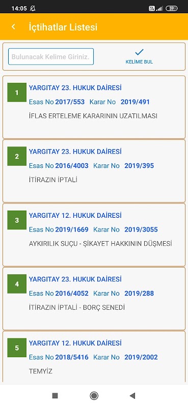 Articles of the Enforcement and Bankruptcy Law No. 2004 are included in the application as List and Detailed view.
