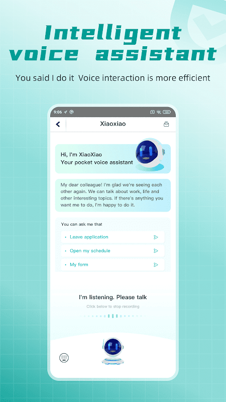 3、 XiaoXiao: A voice intelligent assistant that helps employees quickly complete operations such as abnormal sales and requesting leave.