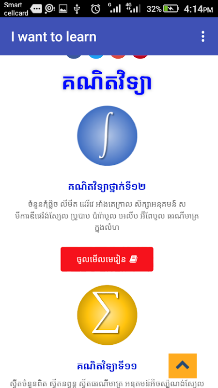 I want to learn is an app for sharing all kinds of knowledge such as Mathematics Khmer language Physics Chemistry Biology Earth Science History Technology Computer English language and other subjects.