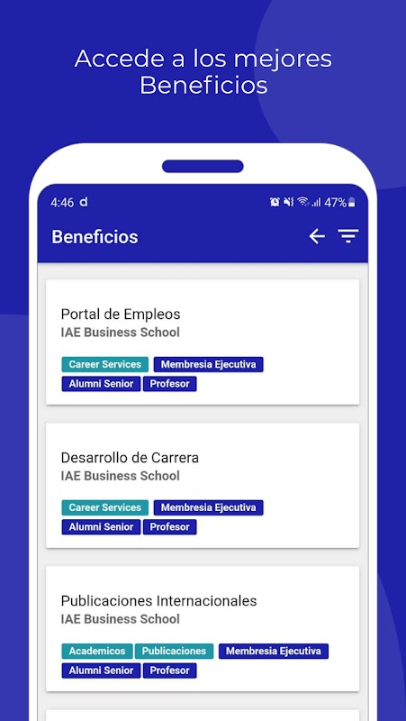With the application of IAE Alumni, you can define your topics of interest, find out about events, meetings and news that the alumni network is generating.